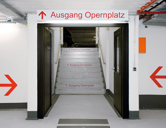 Това се отнася преди всичко за особено невралгичните зони за движение, включително подземния паркинг с 580 паркоместа и многобройните технически и складови помещения.