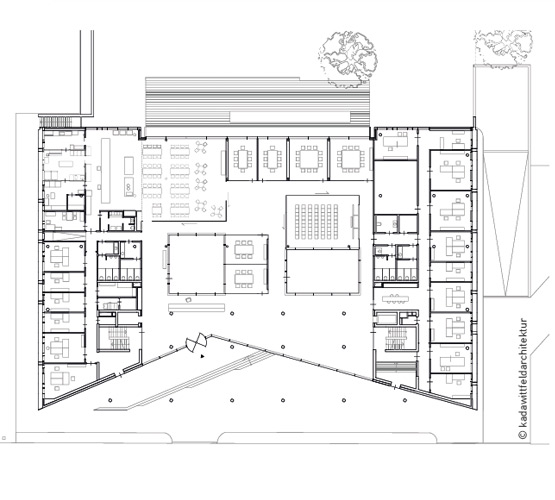 Заобиколена от главни пътища, крайградска железница и магазини, архитектите интегрират новата сграда прецизно в съществуващата топография. Интериорът на сградата също трябваше да отговаря на изискванията на клиент със собствено високо ниво на компетентност. Икономичността трябваше да бъде хармонизирана с екологията, както и безопасността и функционалността с атмосферата и външния вид.
