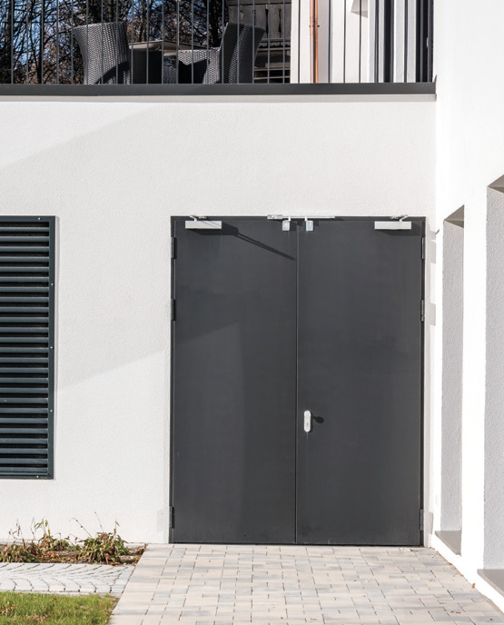 | Мултифункционални врати от серията Premio със задвижване на врати с люлеещи се врати или със свободен затварящ механизъм и лесен момент на отваряне като преход от жилищните помещения на хотела към подземния паркинг или сутеренните помещения |