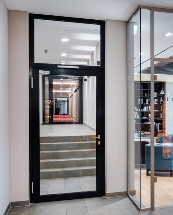 | Алуминиеви външни врати за странични и задни входове на хотели с термично разделена трикамерна система и коефициент на топлопреминаване Uf = 1,3 - 1,9 W/m²K |