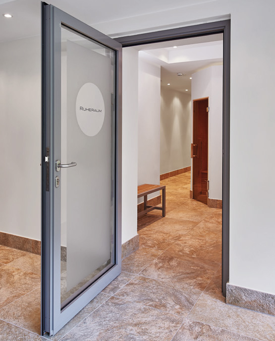 | Врати с тръбна рамка и матирано стъкло за уединение в уелнес зоната на хотелските съоръжения |