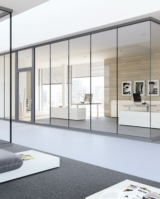 | Изцяло стъклени стени във версия T30 (EI2 30) (също с вградена врата) от Novoferm за прозрачни прегради за дизайн на отворени помещения |