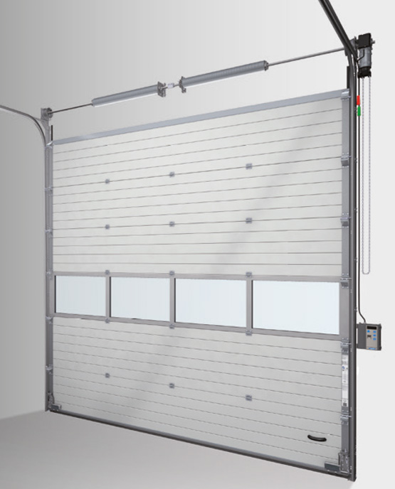 | Индустриални секционни врати с интегрирана защита срещу счупване на пружина, защита срещу счупване на въже и защита срещу повдигане или счупване при отваряне |