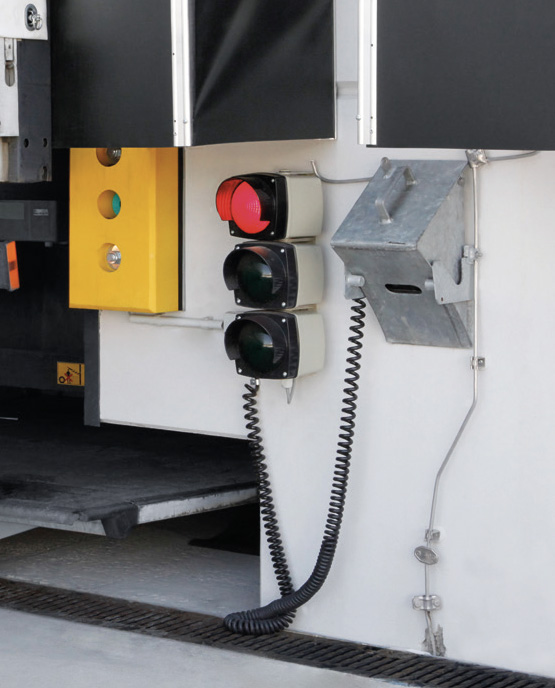 | Светлини за товарене с подвижни шарнирни рамена за осветяване на всеки ъгъл на зоната за товарене с дневна светлина | Светофари и мигащи сигнализатори от двете страни на индустриалните врати за регулиране на транзитния трафик | |