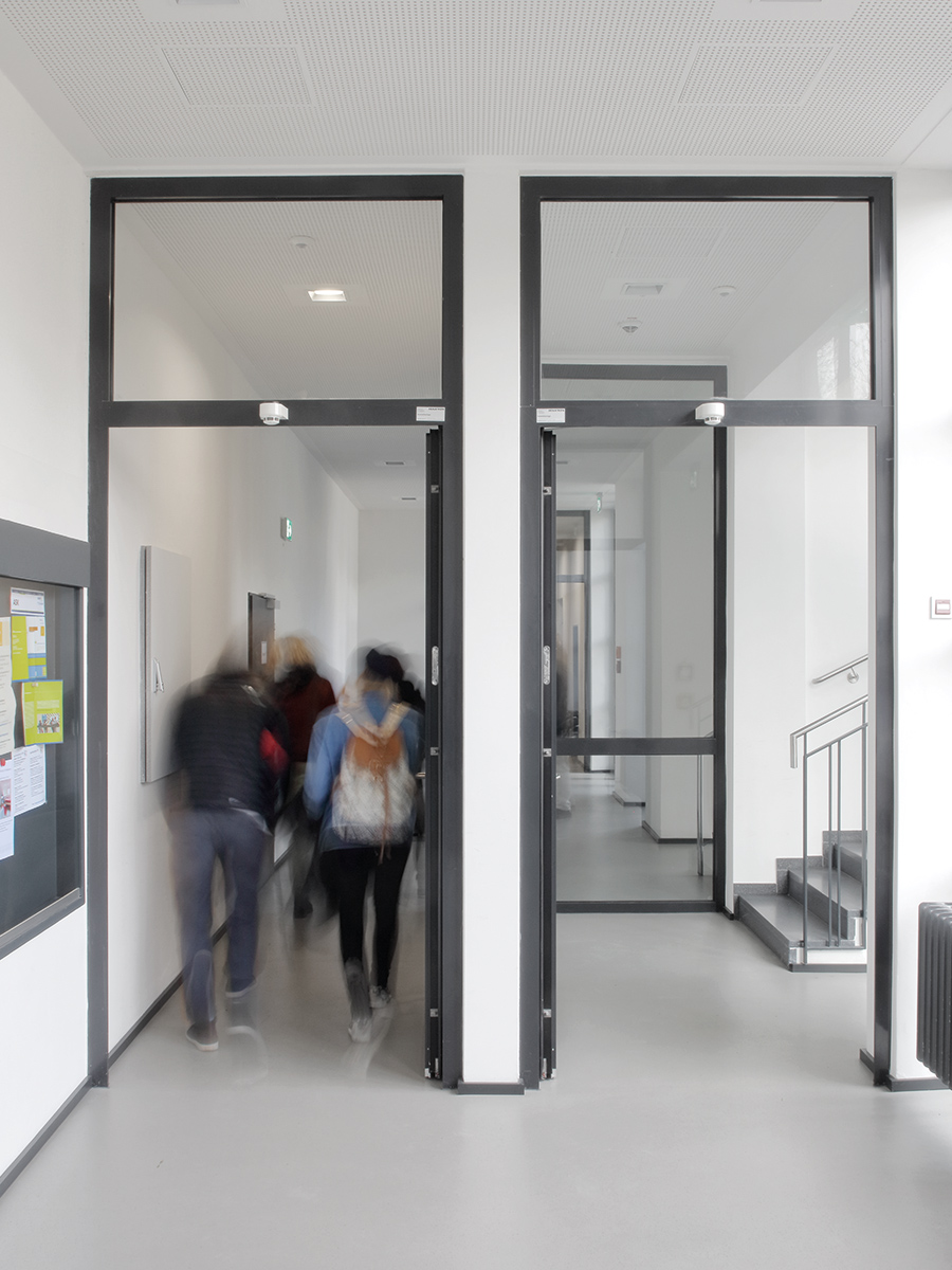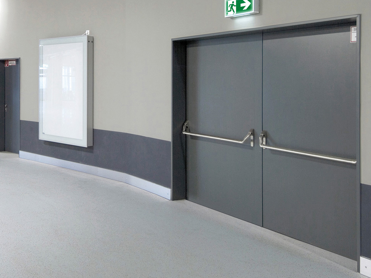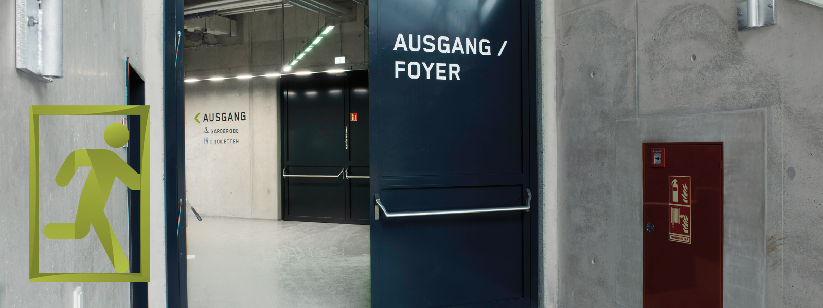 - Push- oder Touchbars nach DIN EN 1125 zum schnellen und sicheren Verlassen des Gebäudes