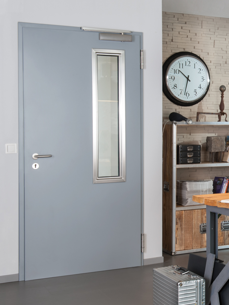 Vielseitige und hochkonfigurierbare Objekttüren in Dickfalz- oder flächenbündiger Ausführung, erhältlich in den Brandschutzklassen EI2 30, EI2 60 und EI2 90, mit zahlreichen Funktionsausstattungen.