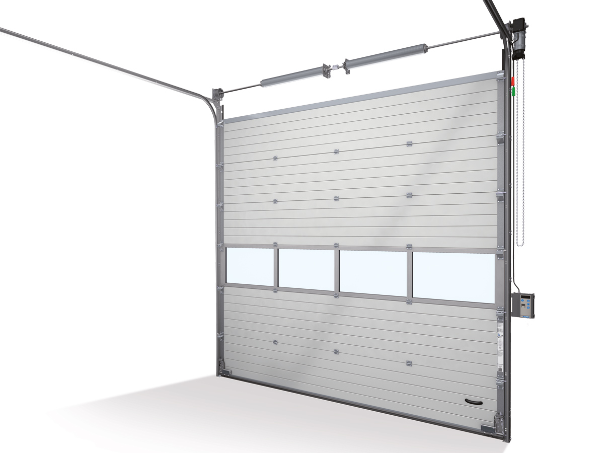 - Industrie-Sektionaltore mit integrierter Federbruchsicherung, einer Seilbruchsicherung und einer Hebe- bzw. Aufbruchsicherung