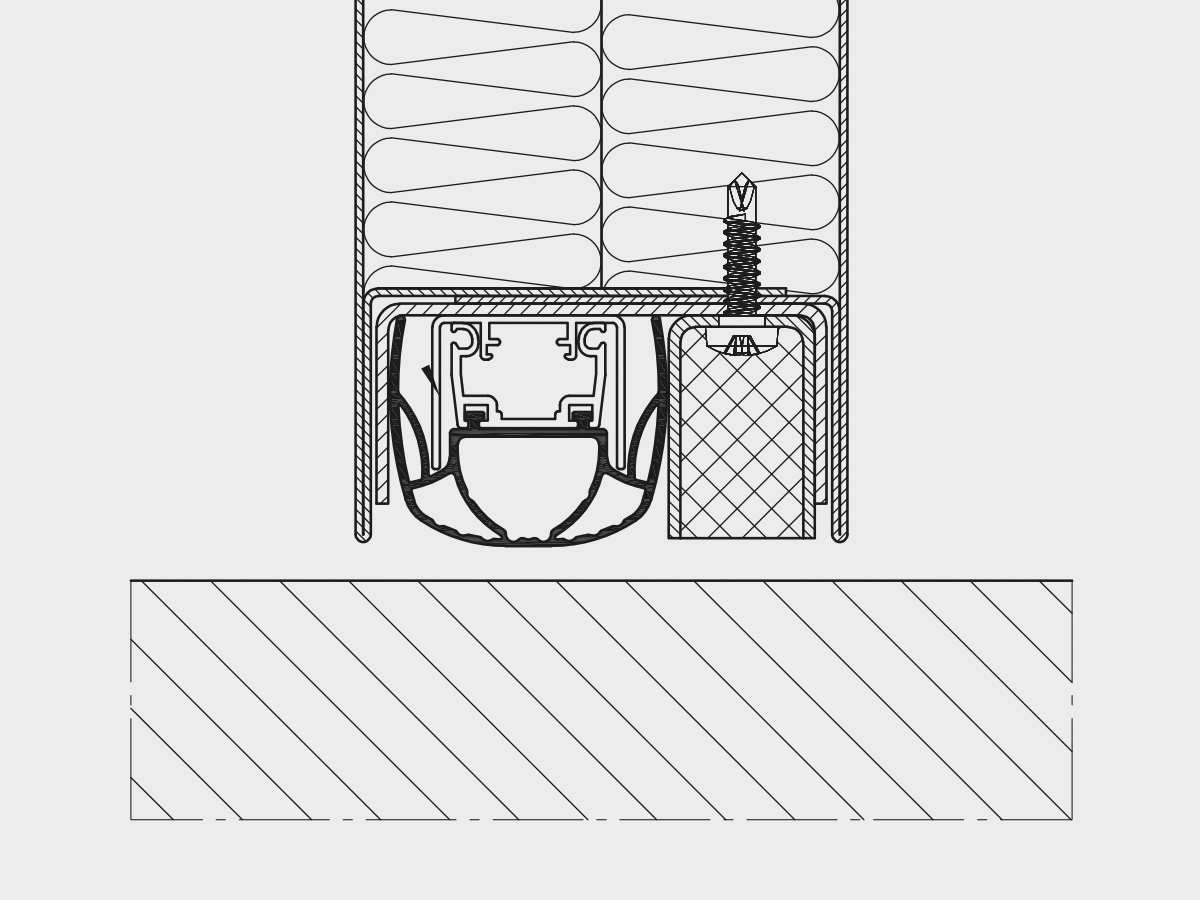 Schallschutztür DB-1 Typ 50: Absenkbare Sonderbodendichtung; die in die Tür eingebauten Dichtungen wirken stark schalldämmend. Die schwellenlose Ausführungsvariante ist auch für Flucht- und Rettungswege zugelassen.