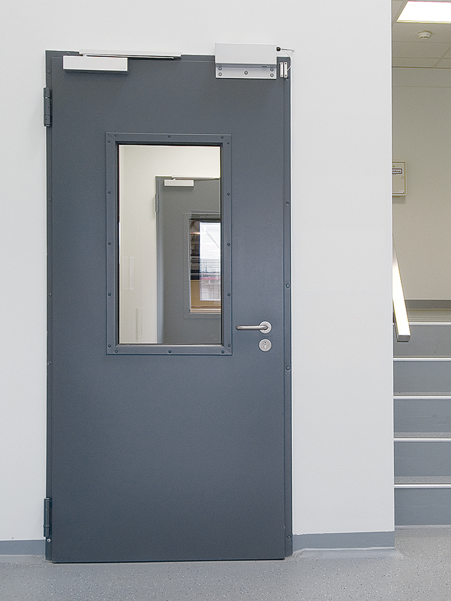 Stahlblech-Multifunktionstüren mit Bullaugen sorgen in den Technikbereichen für ansprechende Sicherheit.
