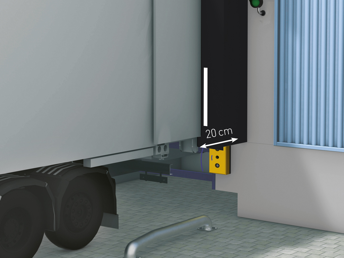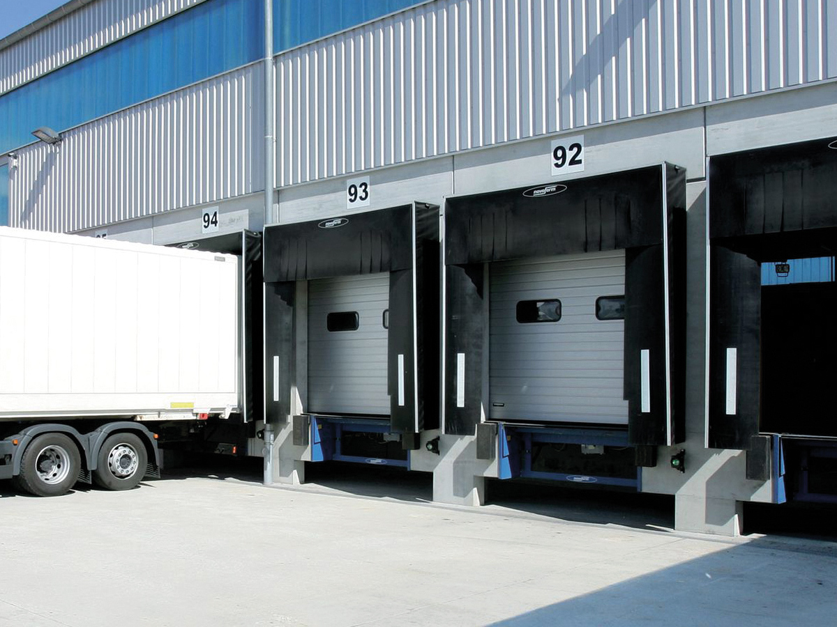 - Hydraulische Überladebrücken, ausgestattet mit speziellen Sicherheitsvorrichtungen (hydraulischer Notstopp, Stoppen aller Bewegungen bei Stromausfall, Wartungsstützen, ...)
