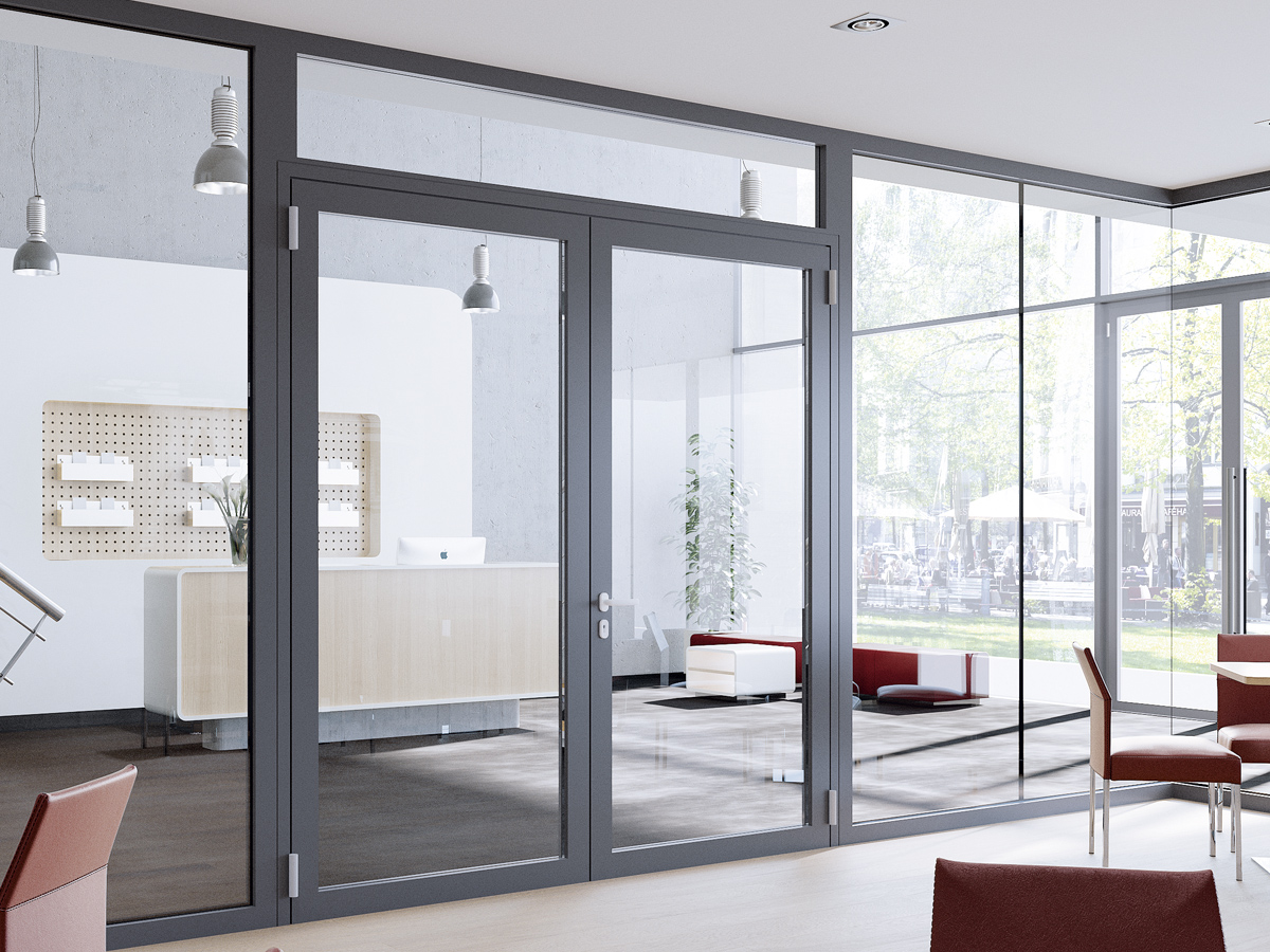 - Rohrrahmentüren aus Glas oder Metall in den Ausführungen EI2 30 und EI2 90 sowie Brandschutzverglasungen in den Ausführungen G30, F30 oder F90 für trans-parente Raumerlebnisse in Büros