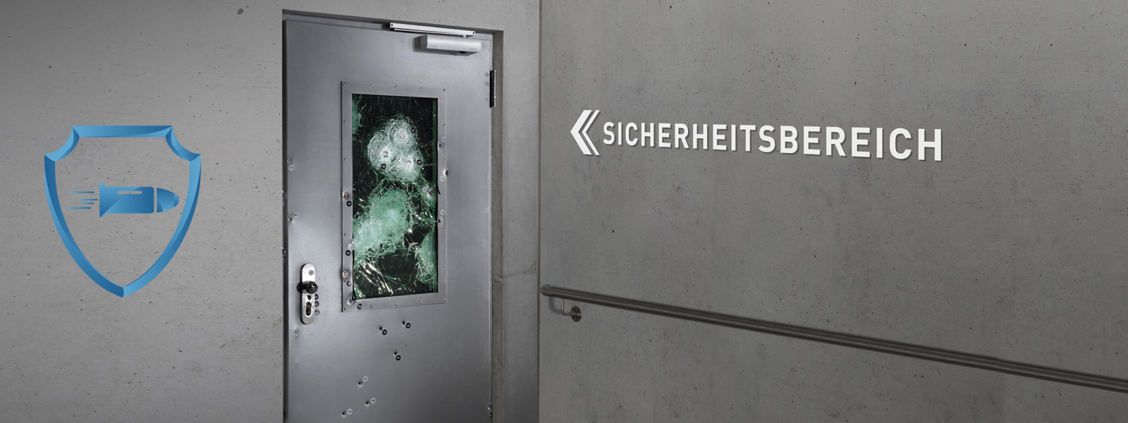- Multifunktionstüren in durchschusshemmender Ausführung nach Beschussklasse FB 4 oder VPAM P6; auch in Feuerschutzausführung möglich