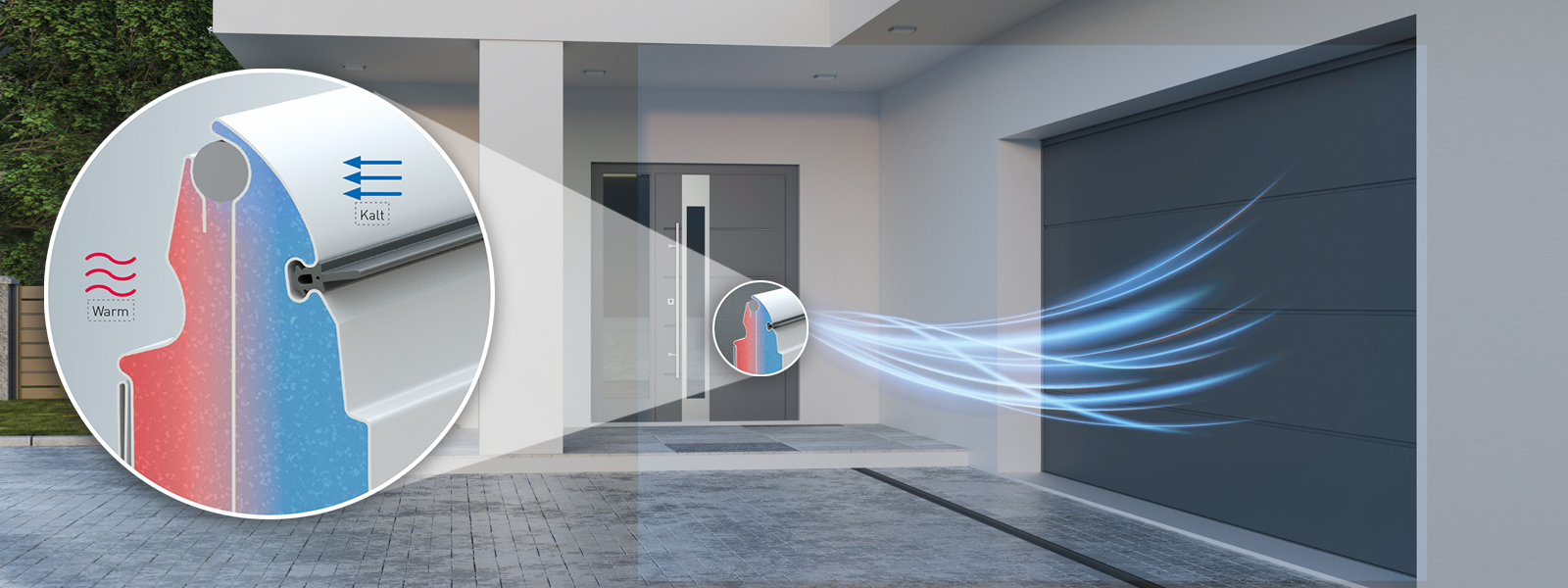Примери за това са изолиращите индустриални секционни врати Thermo с 80 mm изолация, бързодействащи ролетни врати с висока скорост на отваряне за поддържане на климата в помещението, софтуер за мониторинг за енергийно ефективно наблюдение на ситуацията при товарене или гаражната секционна врата EVOLUTION с термично разделени секции и особено висока топлоизолация за частни гаражи.
